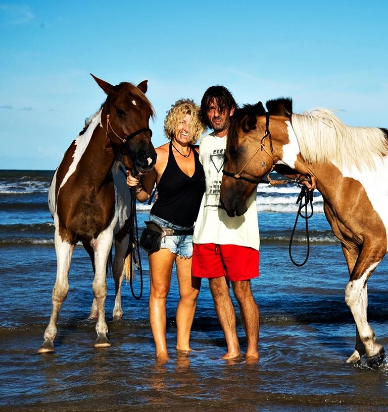 Somos arquitetos, músicos e defensores apaixonados do bem-estar animal, e vivemos em nosso pequeno paraíso em harmonia com cavalos, cães e gatos. Nossa trajetória nasceu em Mallorca, onde durante muitos anos dedicamos nossas vidas à proteção dos animais. Lá, nossas vozes ecoaram em publicações, reportagens de rádio e programas de TV, em histórias de quem ousa viver seus sonhos, como nos formatos de Goodbye Deutschland. Hoje, esse caminho floresce aqui, à beira do Atlântico. Ao receber nossos hóspedes, gostamos de compartilhar não apenas o lugar, mas também a essência de nossas vidas,feita de música, natureza e respeito por todos os seres.